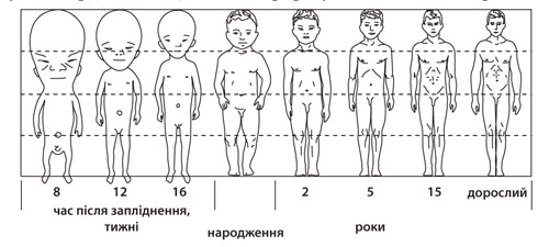 І. Пропорції тіла людини з часом змінюються.