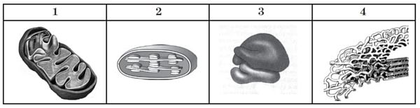 Установіть відповідність між органелою, зображеною на рисунку (1-4), і функцією (А-Д), яку вона виконує в клітині.