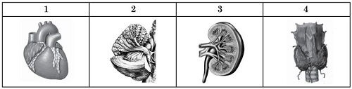 Увідповідніть зображення органа (1-4) організму людини з системою (А - Д), до якої він належить.
