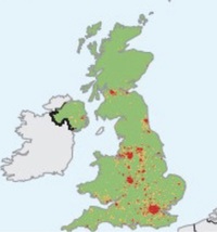 На якій картосхемі відображено найбільшу в Європі поліцентричну агломерацію міст – Рурську?