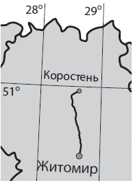 Потяг вирушає вранці о 8 год. 30 хв. у сонячну спекотну погоду з міста Коростеня до міста Житомира. Пасажиру краще сісти у вагоні потяга там, де прохолодніше, –