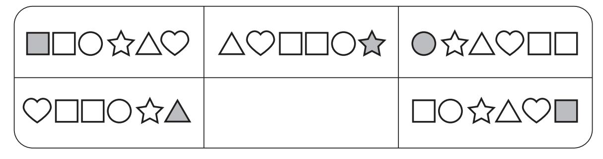 Установіть закономірність і виберіть пропущений у наведеному зображенні фрагмент.