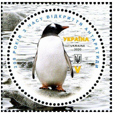 Розгляньте марку, яку створено до 200-річчя відкриття Антарктиди. Зображена на ній тварина мешкає в цій частині земної кулі, пристосована до пересування у воді й належить до