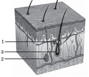 ІІ. Цифра 1 указує на потову залозу, цифра 3 - на сальну.