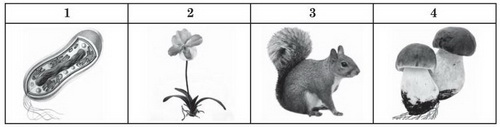 Увідповідніть зображення організму (1-4) з особливістю будови клітин (А - Д), що його утворюють.