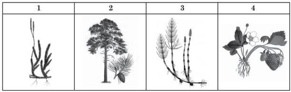 Увідповідніть зображення рослини (1-4) з групою (А - Д), до якої вона належить.
