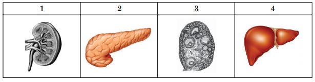 Установіть відповідність між зображеним органом організму людини (1-4) та його функцією ( А-Д).