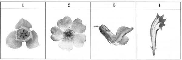 Установіть відповідність між зображенням квітки (1-4) та назвою родини (А-Д), для якої вона характерна.