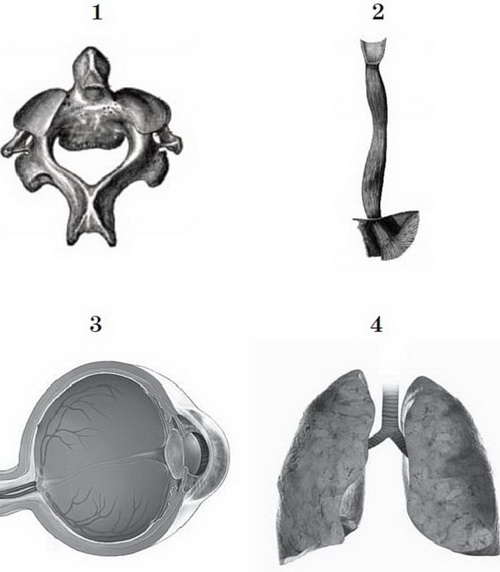 Установіть відповідність між органом, зображеним на рисунку (1-4), та системою (А-Д), до якої він належить.