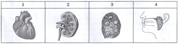 Установіть відповідність між зображеним органом (1-4) та системою (А-Д), до якої він належить.