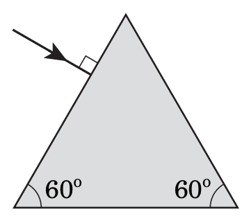На рисунку показано вузький паралельний пучок світла, який падає з повітря на скляну призму. Абсолютний показник заломлення скла 1,5.