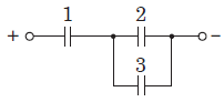 Три конденсатори однакової електроємності приєднали до кола постійного струму (див. схему). Визначте, у скільки разів енергія електричного поля конденсатора 1 більша за енергію електричного поля конденсатора 2.