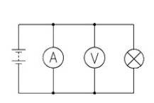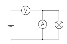 Виконуючи лабораторну роботу з визначення опору лампи розжарювання, учні зобразили кілька електричних схем. Укажіть схему електричного кола, складання якого може призвести до псування амперметра.