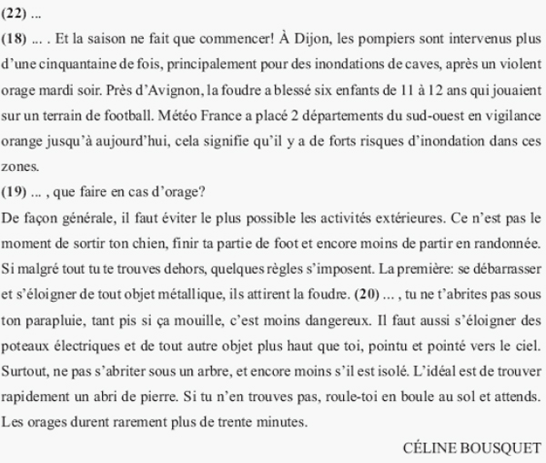 Laquelle de ces propositions conviendrait pour le début de ce texte?