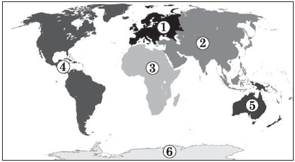 На картосхемі відображено поділ суходолу Землі на шість