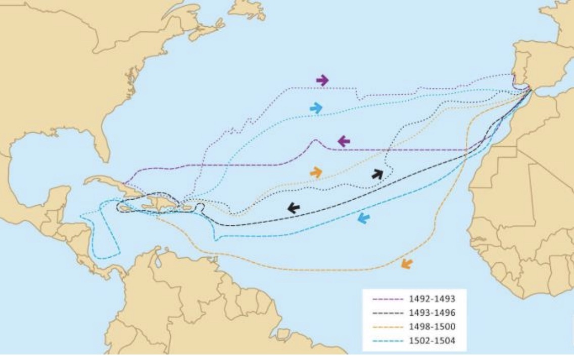Яку частину Світового океану перетинали експедиції Христофора Колумба (див. картосхему)?