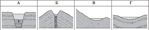 Враховуючи форму і глибину Байкалу, визначте, на якому рисунку відображено походження його озерної улоговини.