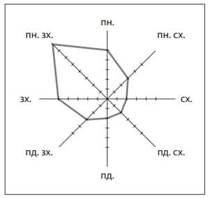 Розгляньте зображену на рисунку розу вітрів, побудовану за результатами спостережень за погодою в червні на одній з метеостанцій України. Визначте, яка погода переважала в цій місцевості протягом місяця.