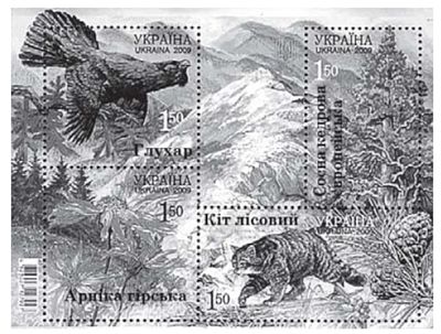 У добірці поштових марок відображено типовий ландшафт природного заповідника