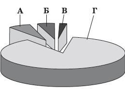 На діаграмі відображено структуру сільськогосподарських угідь України. Якою буквою позначено частку ріллі?