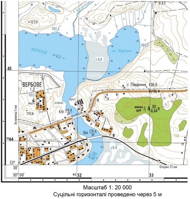 За топографічною картою визначте правильні характеристики природних водних об’єктів у межах територіальної громади Вербового.