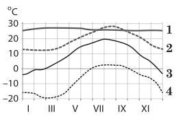 Увідповідніть графік річного розподілу температури повітря з типом клімату в Північній півкулі Землі.