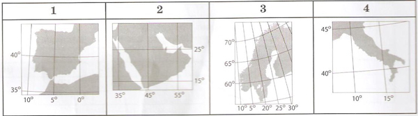 Установіть відповідність між картографічним зображенням півострова та назвою розташованої на ньому країни.