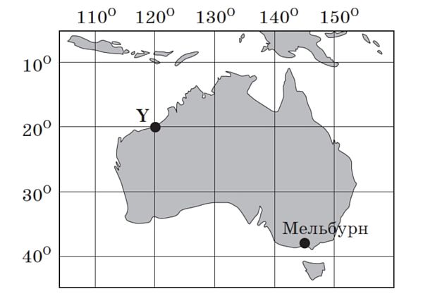 Визначте відстань від точки У до екватора (у градусах).