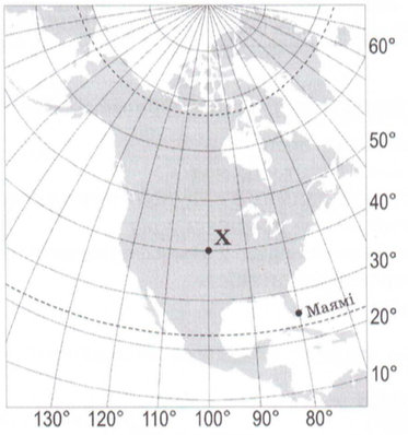 Визначте азимут, за яким летітиме літак з Маямі найкоротшим шляхом в напрямку екватора.