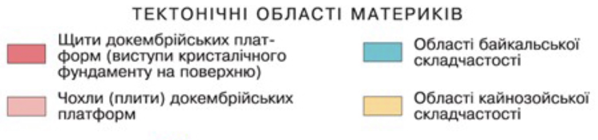 За картою визначте основні тектонічні структури, що сформували материк Південна Америка.