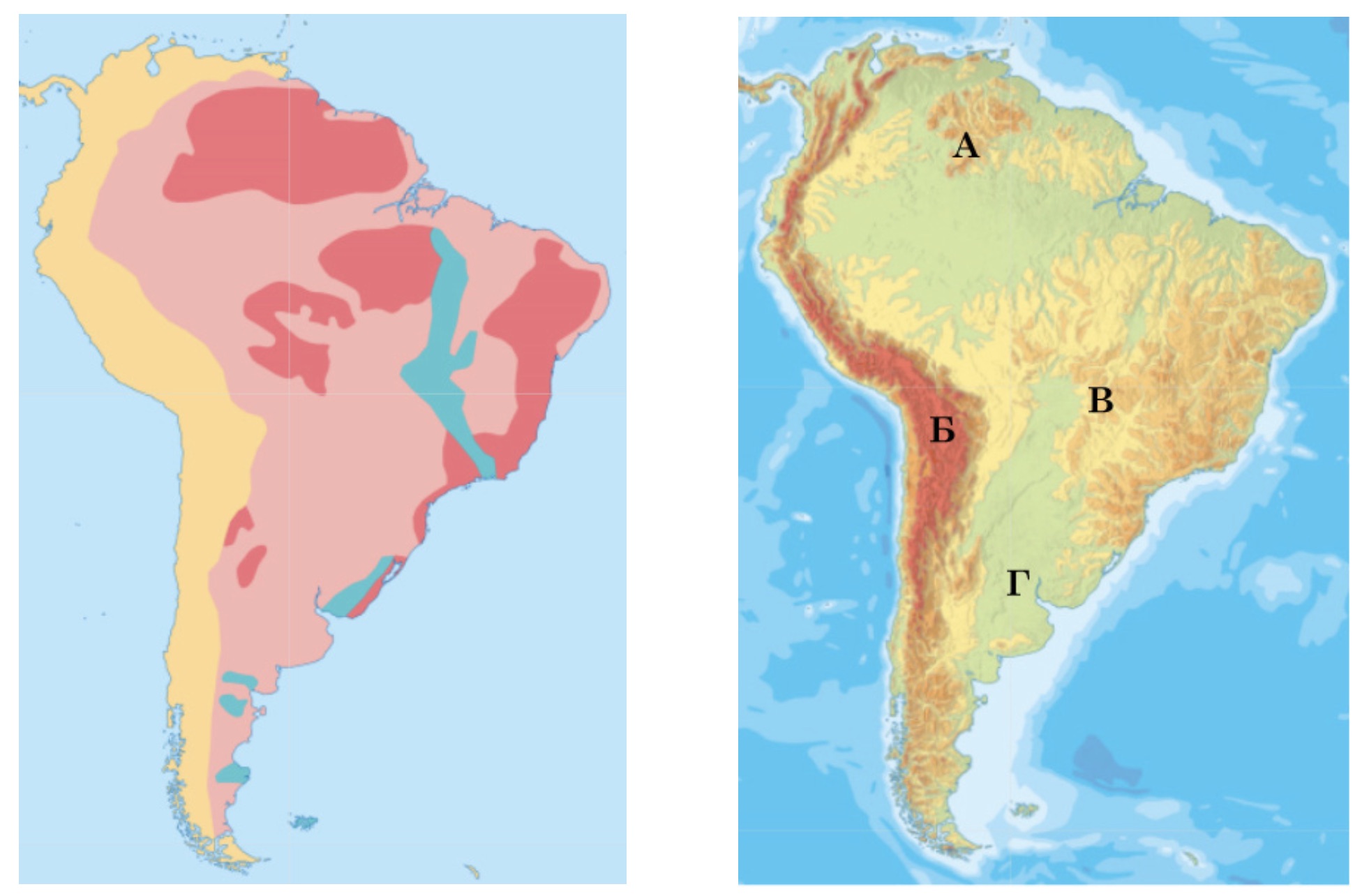 Укажіть на фізичній карті Південної Америки плоскогір’я, яке відповідає Гвіанському щиту докембрійської платформи.