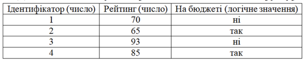 Дано таблицю «Студент» реляційної бази вказаної структури та змісту. До цієї таблиці зробили запит: