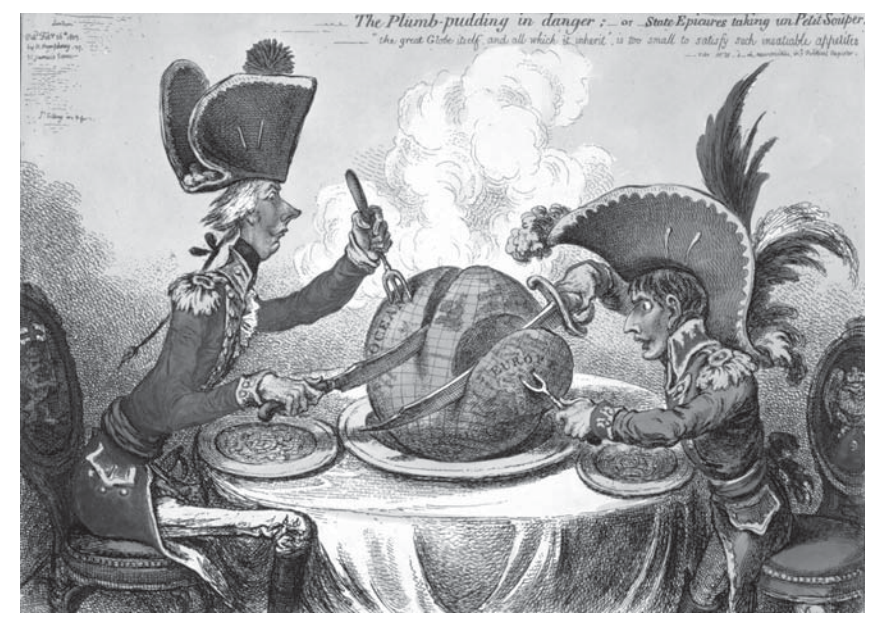 Боротьбу яких країн за «перерозподіл світу» на початку XIX ст. зображено на карикатурі?