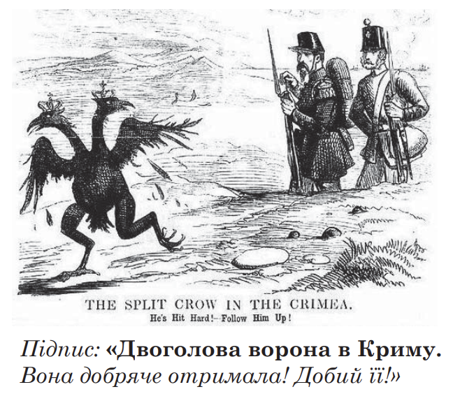 Проаналізуйте карикатуру з лондонського журналу «Панч» від 29 вересня 1855 року й дайте відповідь на запитання. Які події розкривають наслідки історичного явища, відображеного на карикатурі?