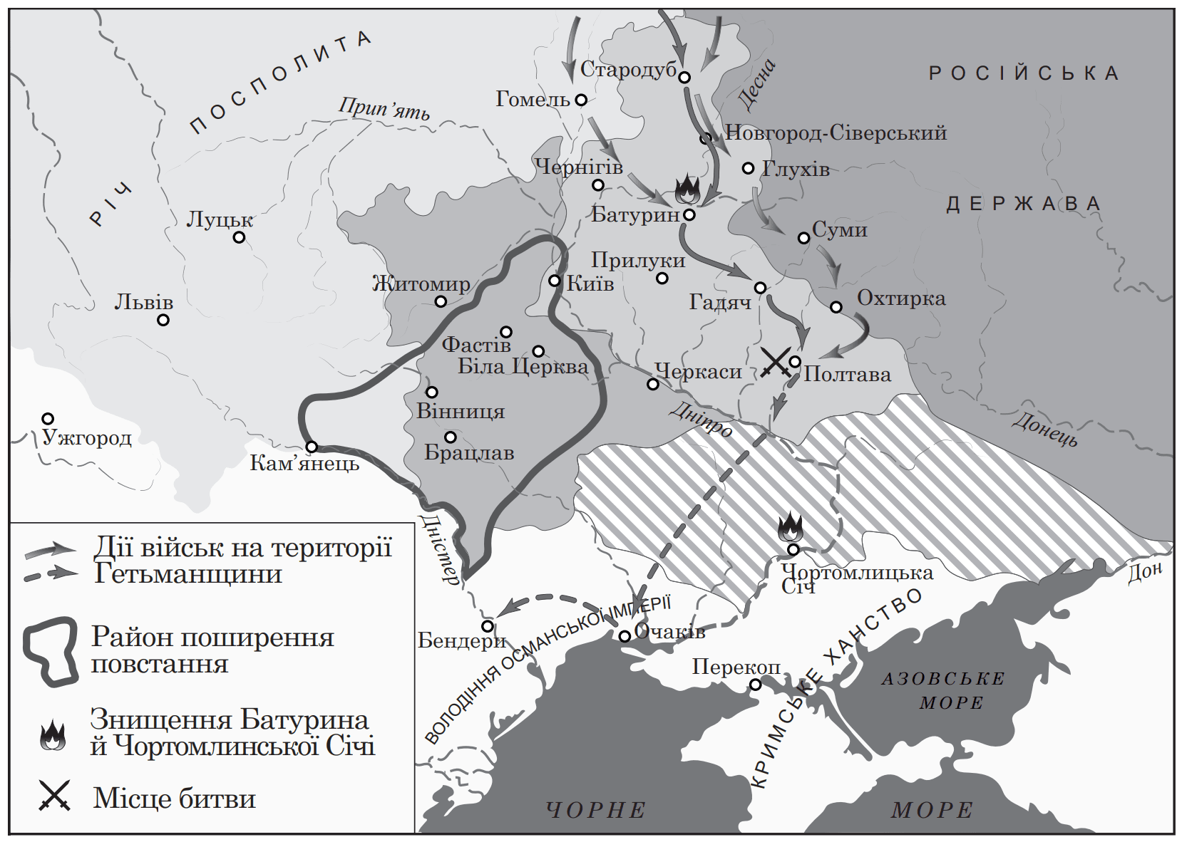 Г) запровадження козацького устрою на Правобережній Україні