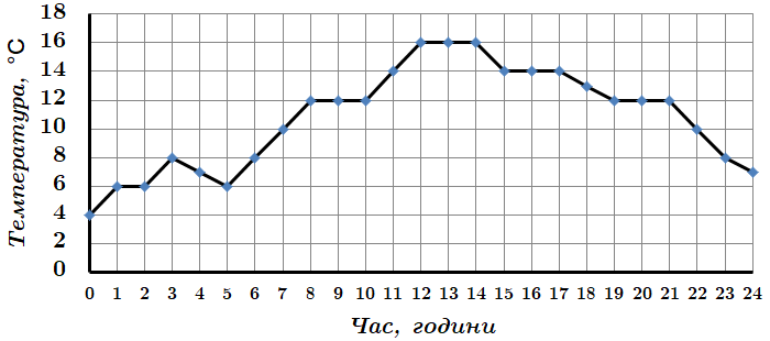 На графіку функції відображено зміну температури повітря в травні протягом доби. Визначте за графіком кількість годин, протягом яких температура не перевищувала