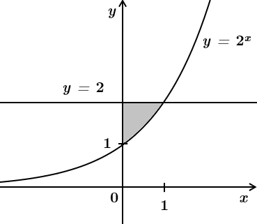 Позначте формулу для визначення площі S фігури, обмеженої графіками функцій y=2x, y=2 та прямою x=0 (див. рисунок).