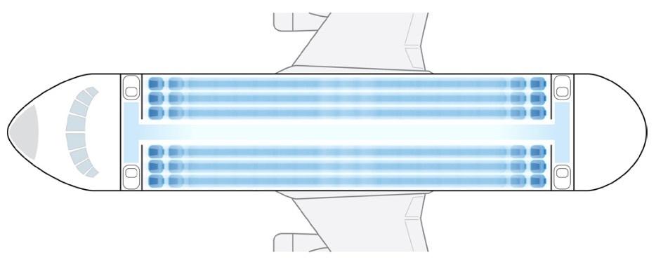 На рисунку зображено схему салону пасажирського літака. У салоні рядів, у кожному з яких розташовано по крісел (по крісла обабіч проходу ). Реєструючи пасажира, електронна система навмання вибирає для нього посадкове місце. Імовірність того, що першому зареєстрованому пасажиру дістанеться місце в перших трьох рядах, дорівнює Визначте