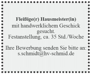 Herr Schulz sucht Stelle als KF Z-Mechatroniker oder PKW-Fahrer. Teilzeitbeschäfti gung ist auch möglich.