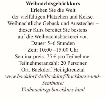 Meghan kommt aus den USA und studiert jetzt in Deutschland. Sie möchte an einer Veranstaltung teilnehmen, wo sie mehr über deutsche kulinarische Traditionen erfahren und etwas selbst zubereiten kann.