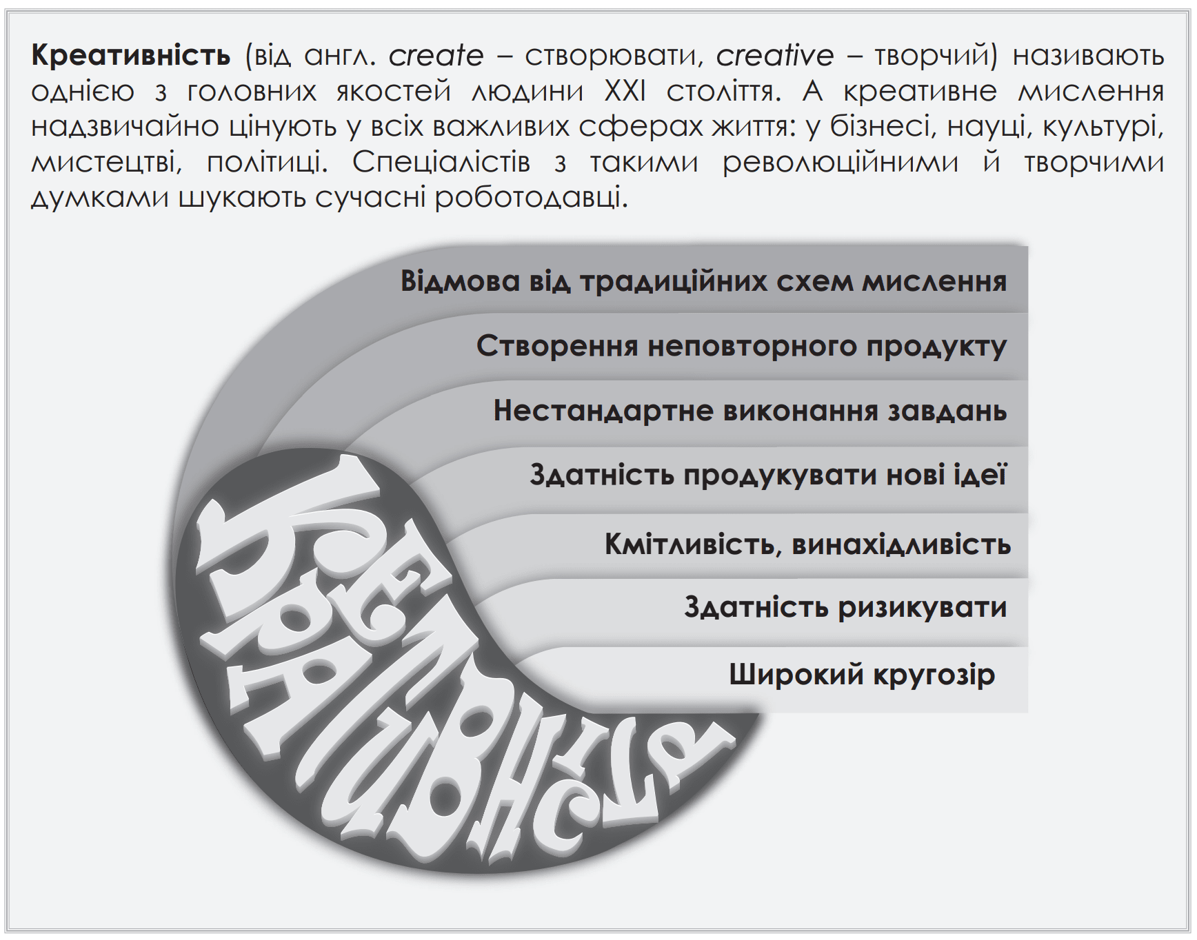 Які складники креативності, на Вашу думку, є особливо важливими для самореалізації людини та її конкурентноспроможності на ринку праці?
