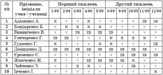 хв - відсутність учня / учениці на всіх навчальних заняттях у цей день через хворобу