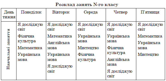 Розклад занять N-го класу