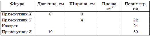 Площа якої з описаних у таблиці фігур найменша?