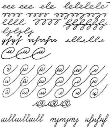 На уроці української мови під час формування в учнів навичок каліграфічного письма вчителька використала наведений на рисунку метод Карстера.