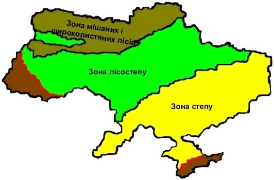 Розгляньте карту природних зон України. Виберіть рядок, у якому зазначено міста, розташовані в зоні лісостепу.