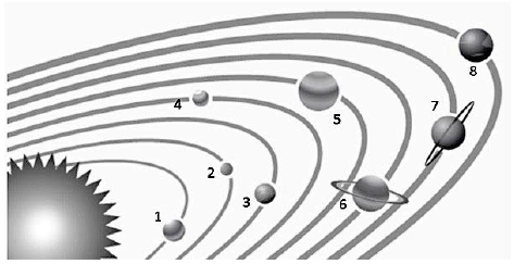 У якому рядку розташовано цифри, що позначають планети земної групи?