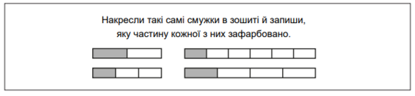На якому етапі формування поняття дробу використовують наведену вправу?