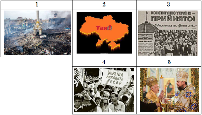 У якому рядку правильно встановлено послідовність подій, зафіксованих на фото 1-5