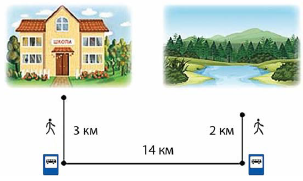 Прочитайте й дайте відповіді на запитання. Тарас та Андрій розробили маршрут подорожі. Скільки кілометрів треба подолати, щоб потрапити зі школи до річки? Скільки кілометрів діти пройдуть, а скільки проїдуть? На скільки кілометрів більше учні проїдуть, ніж подолають пішки?